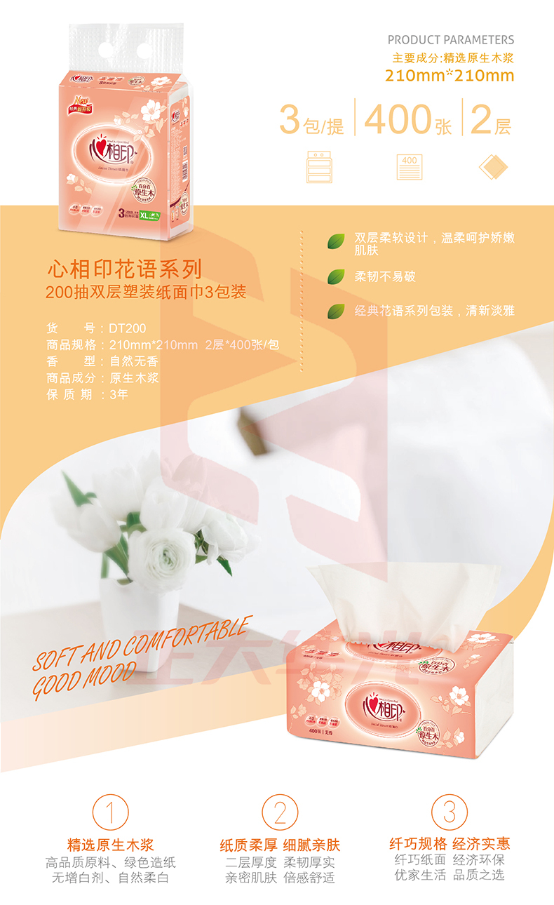 心相印软抽纸 DT200 200抽双层面巾纸 16提/箱