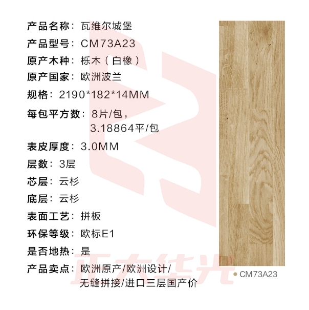 大自然(Nature)【A】环保地暖实木复合多层(三层)木地板14mm 栎木 瓦维尔城堡 包安装
