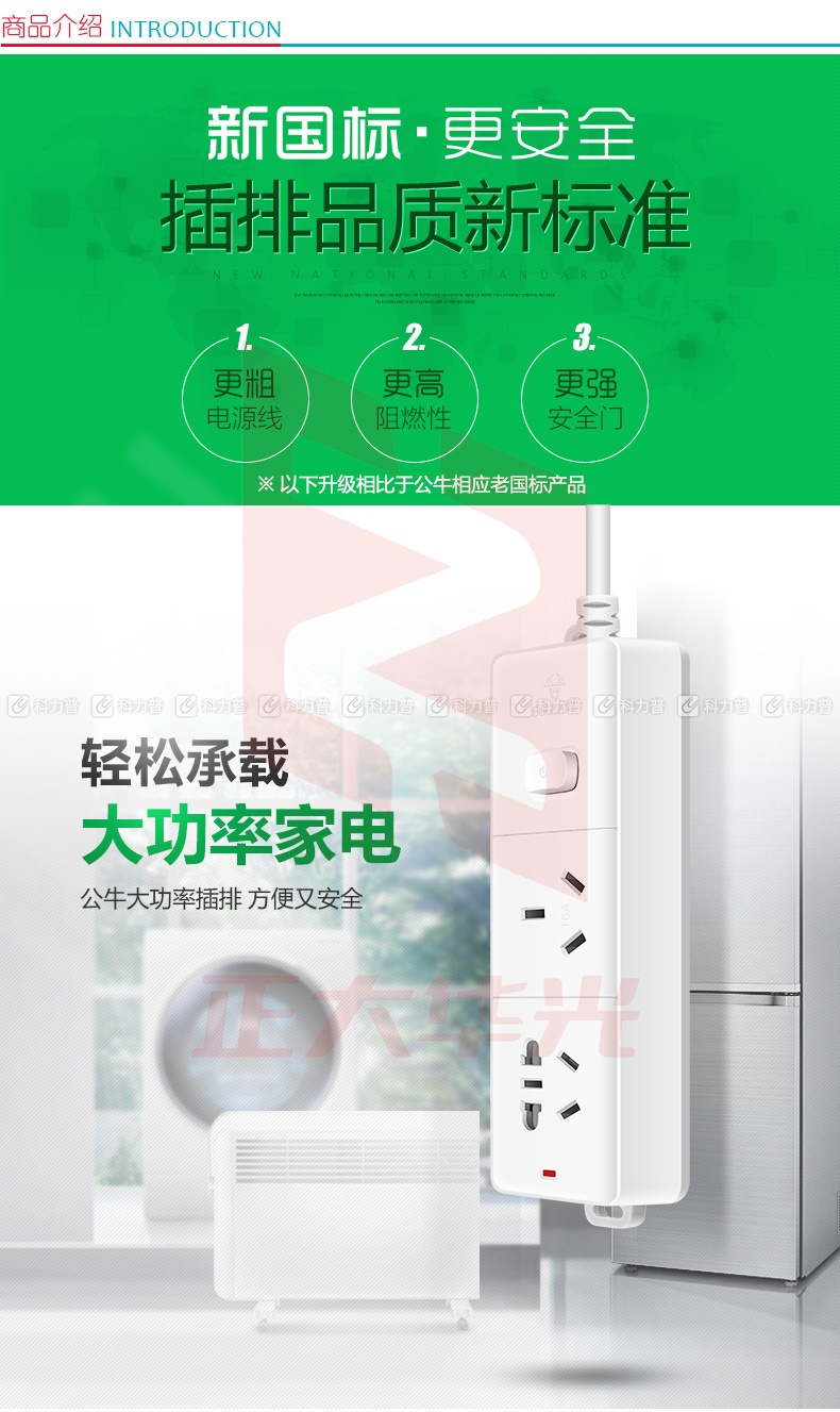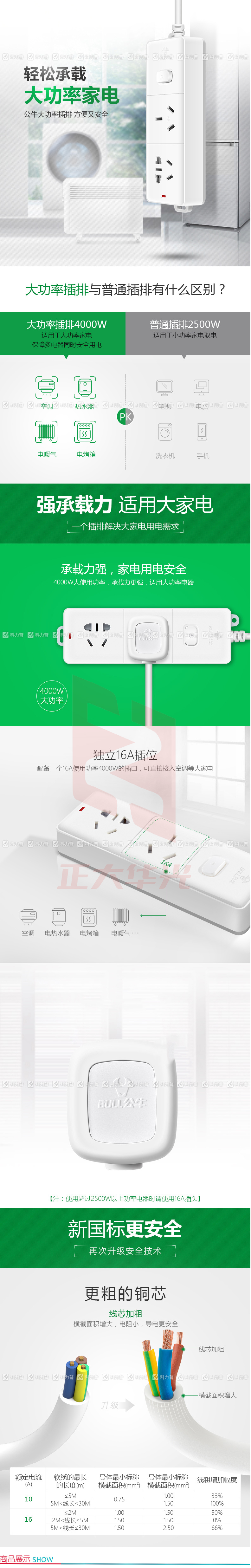 公牛 BULL 拖线板 GN-606D 总控2位 3米 16A空调专用插座 电暖器插板 4000W大功率(2017新国标)