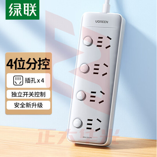 绿联 新国标插排/插线板/插座带线 4位分控5孔 线长1.8米 15080 (XTGM202307171030087)