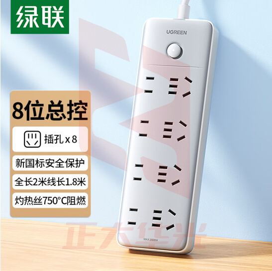 绿联(UGREEN)新国标8位总控插座 插线板 接线板 4位五孔+4位两孔 1.8米 15079 (XTGM202307171030076)