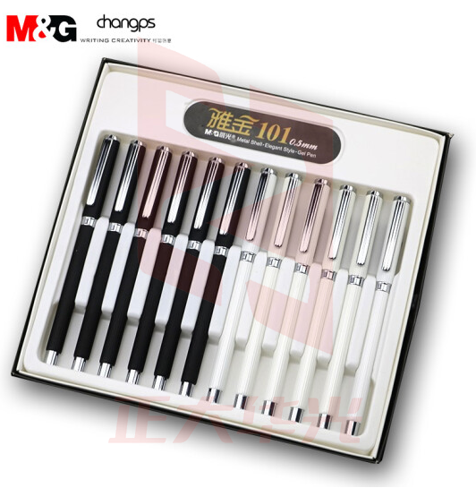 晨光雅金101金属中性笔AGPA4402金属签字笔0.5mm黑笔金属笔杆重手感笔铁杆水笔商务会议金属碳素笔12支一盒装 XTGM01280902352355