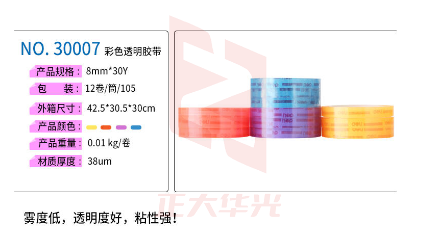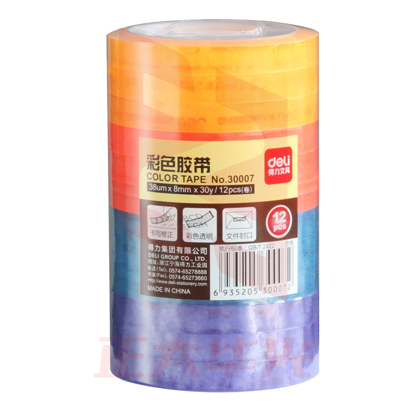 得力30007彩色强韧型文具胶带8mm*30y*38um(混)(12卷/筒)XTGM02281103228351