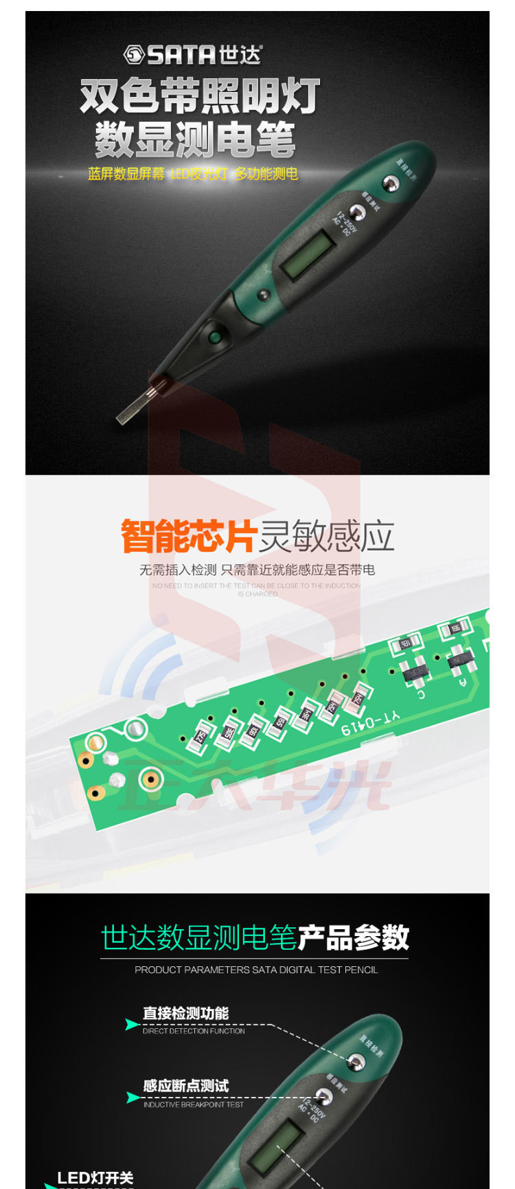 世达 62602 双色带照明灯数显测电笔(单位:个)