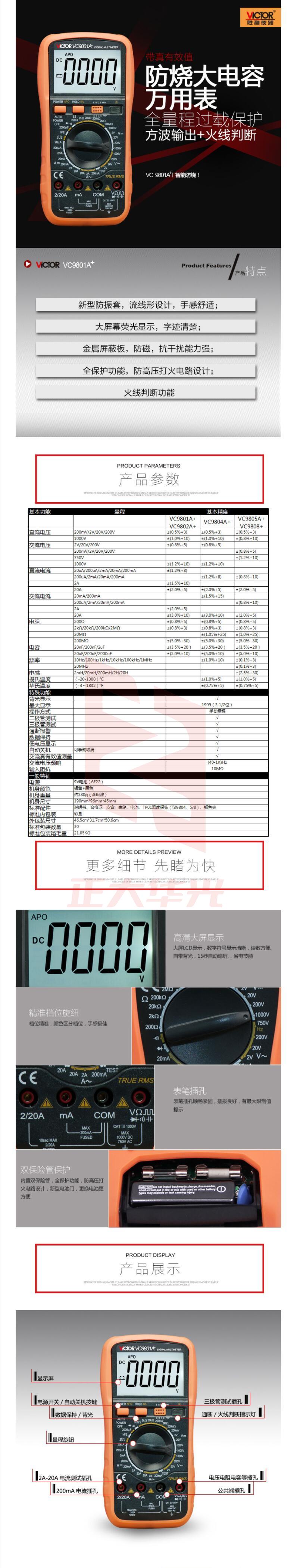 胜利仪器(VICTOR) 交流电流表钳形数字万用表VC6016C G20160976