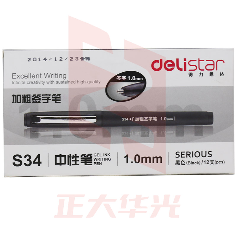 得力S34中性笔1.0mm子弹头(黑)(12支/盒)XTGM04121226077010