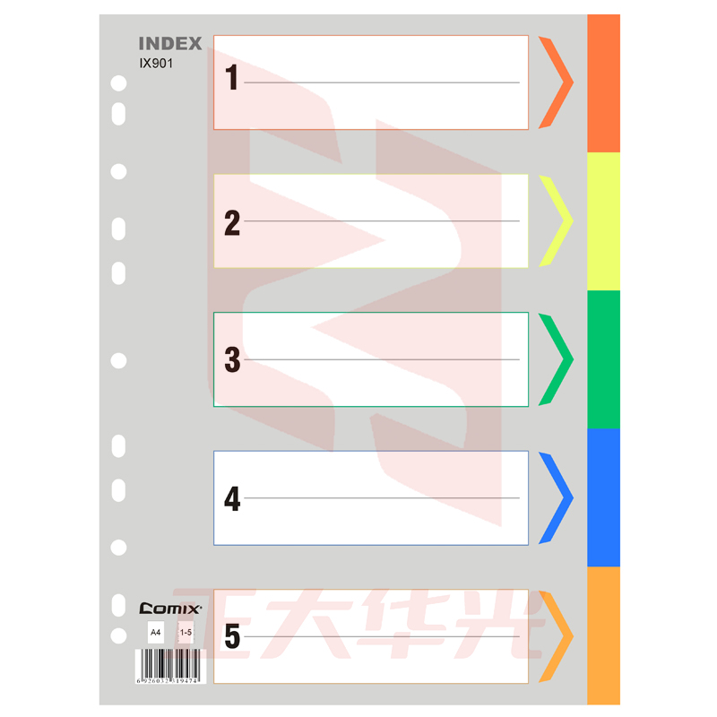 齐心 IX901 易分类 五色索引纸 A4 11孔 PP(颜色随机) XTGM02081044592366
