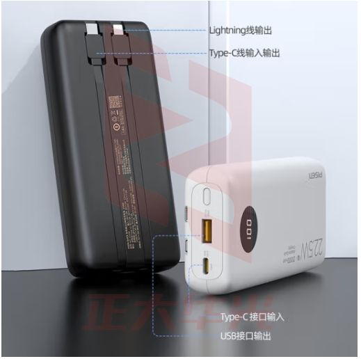 品胜22.5W超级快充充电宝双自带线Type-c双向快充20000毫安时大容量户外移动电源适用苹果14/13华为小米白 (XTGM202307201515375)