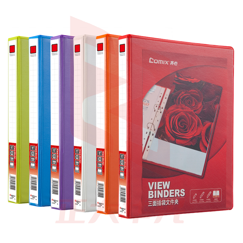 齐心 A0213 易展示 美式三面插袋文件夹 A4 1.5寸3孔D型夹 白色 XTGM02090803148878
