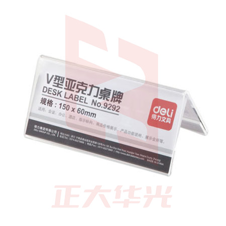 得力9292V型亚克力桌牌(透明)(只)XTGM04071424349059