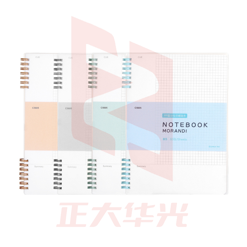 齐心 C5605 莫兰迪系列PP面分段双螺旋本 B5 80张(蓝 绿 黄 灰) C5605