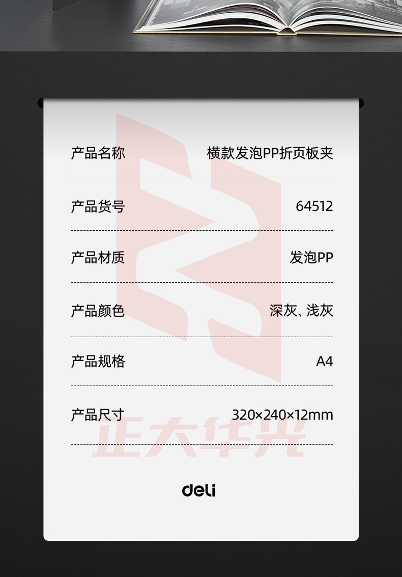 得力64512横款发泡PP折页板夹(深灰)(个)XTGM02151320595987