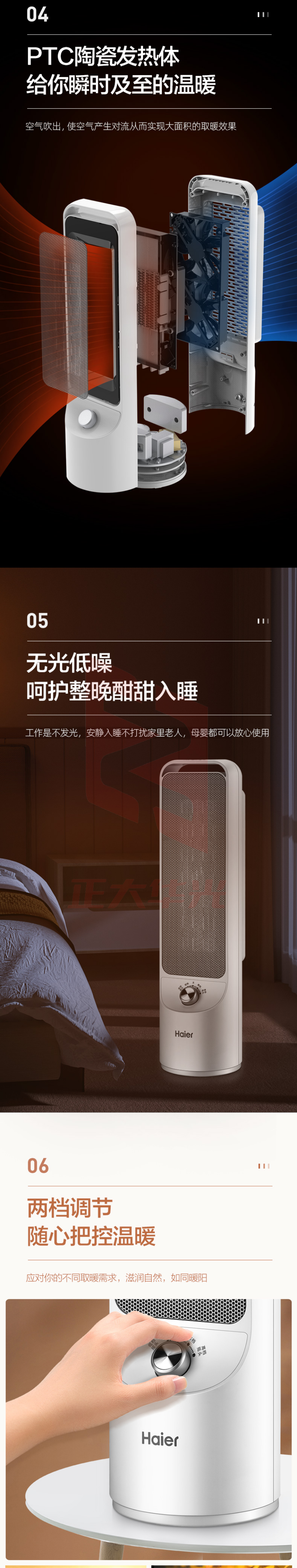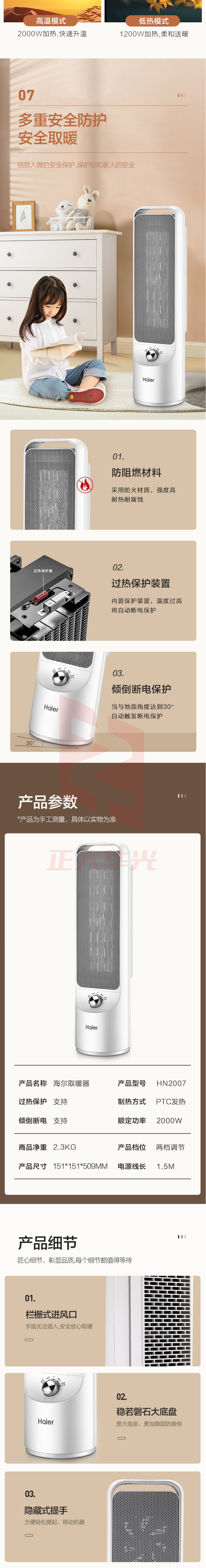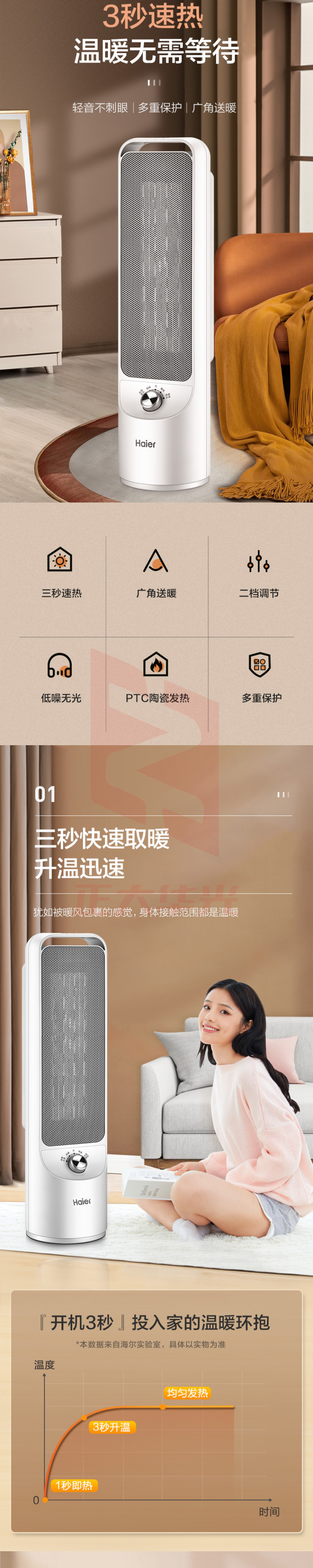 海尔 取暖器家用暖风机立式电暖风浴室电暖器节能省电速热电暖气速热小型烤火炉HN2007机械款