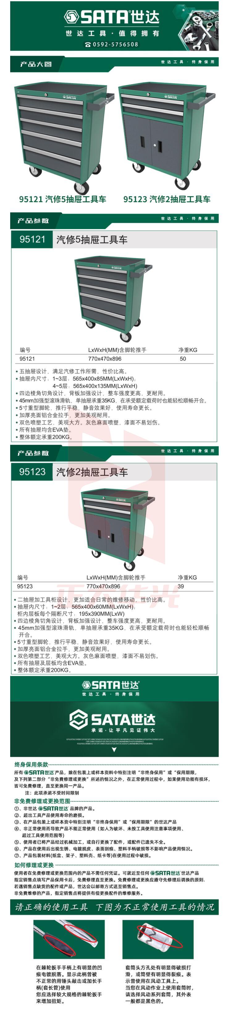 世达(SATA) 汽修5抽屉工具车770x470x896MM 95121