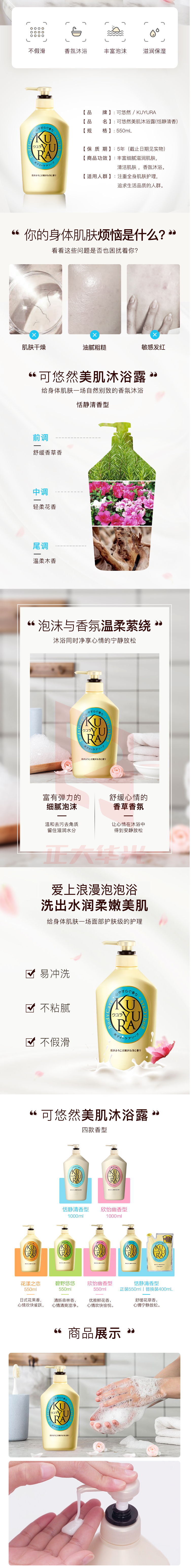 可悠然 沐浴露香氛美肌沐浴乳 男女通用原装进口(恬静清香550ml)