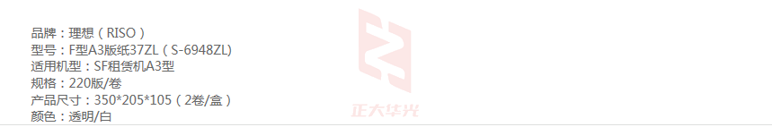 理想(RISO)F型A3版纸37ZL(S-6948ZL) 1盒装 每盒2卷