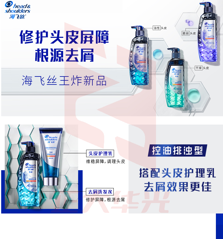 海飞丝 王炸定制专研去屑洗发水300g油性头皮止痒去油无硅油洗发露洗头膏男女通用