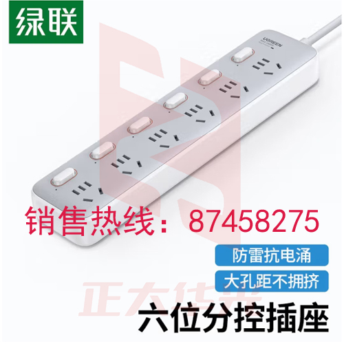 绿联 新国标6位分控防雷插座 抗电涌防电涌插线板/插排/排插/插板/接线板/拖线板 线长1.5米 全长1.8米 XTGM202307171030043