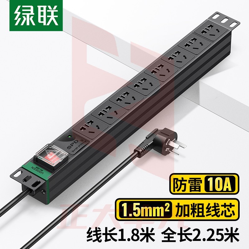 绿联(UGREEN)PDU机柜插座 8位10A防雷插排新国标机房接线板 总控线长1.8米全长2.25米 80936 (XTGM202307171029208)