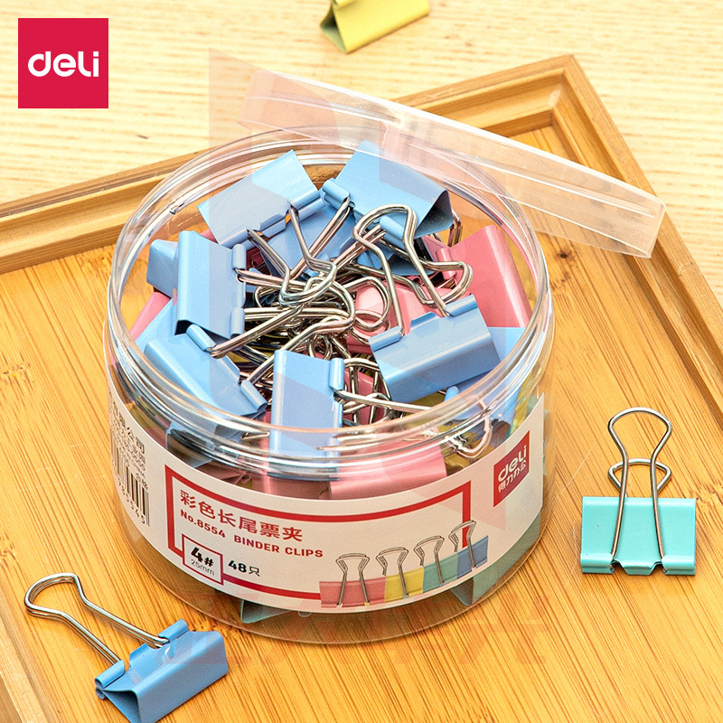 得力8554彩色长尾票夹25mm筒装(混)(48只/筒)XTGM0220153252575