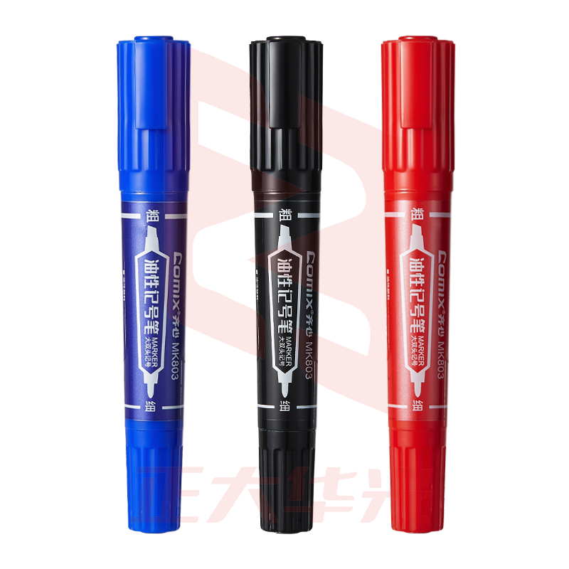 齐心 MK803 记号笔2.0mm和6.0mm 大双头(红黑蓝颜色备注) XTGM02020835165450