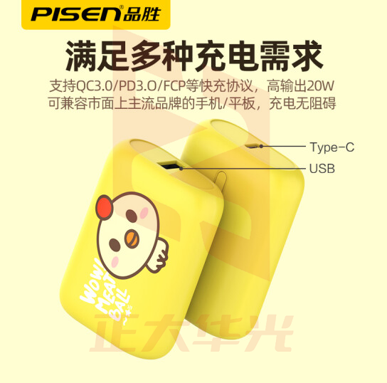 品胜(PISEN) QP20充电宝10000毫安PD20W快充可爱卡通超萌少女迷你便携移动电源上飞机四喜丸子 鸡咯咯【USB+PD双输出 20W全面快充提速】 (XTGM202307201519156 )