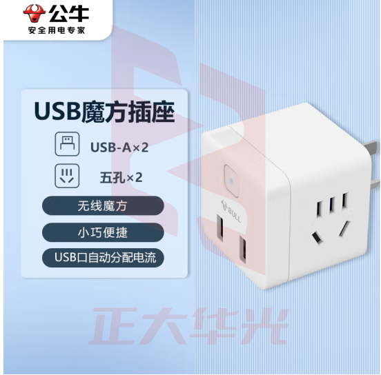 公牛(BULL) 小魔方USB插座 插线板/插排/排插/接线板 2孔+2USB口 无线魔方 GNV-U9B122