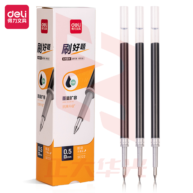 得力SE122备考中性笔替芯0.5mm扩容按动弧度收口子弹头(红)(20支/盒) XTGM04171526304007