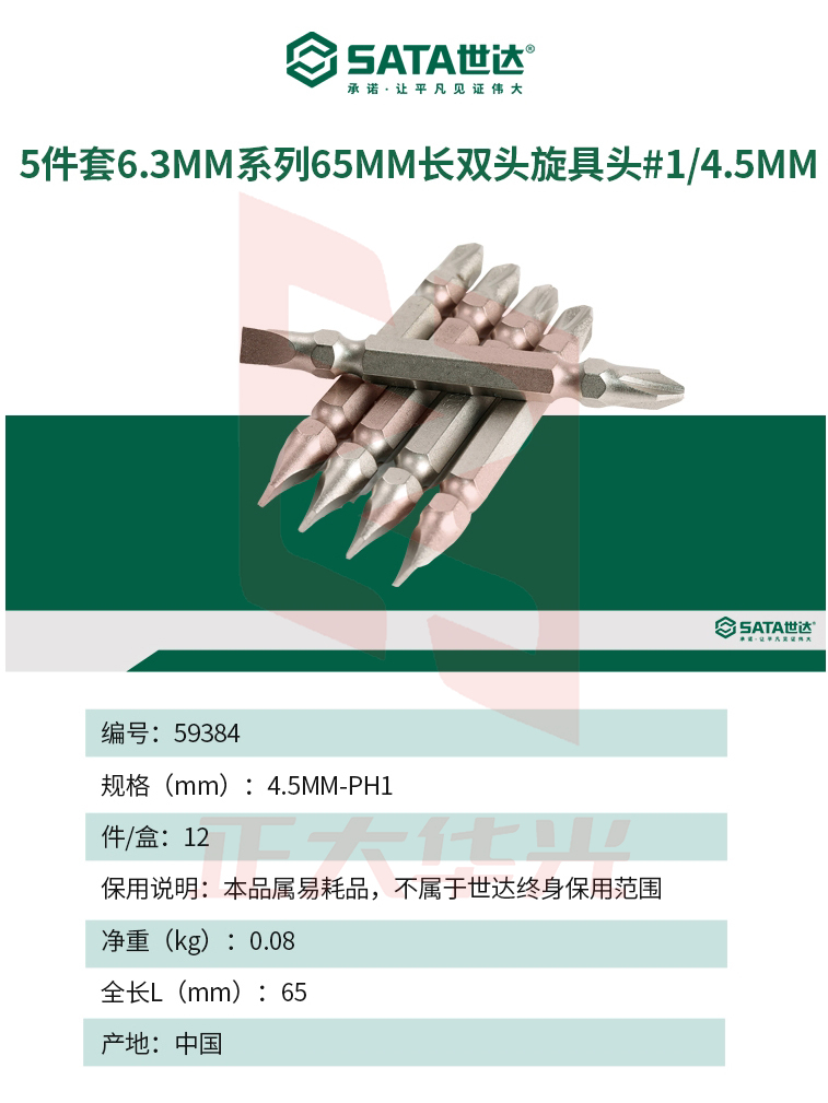 世达(SATA) 59384 5件套6.3MM系列65MM长双头旋具头#1/4.5MM