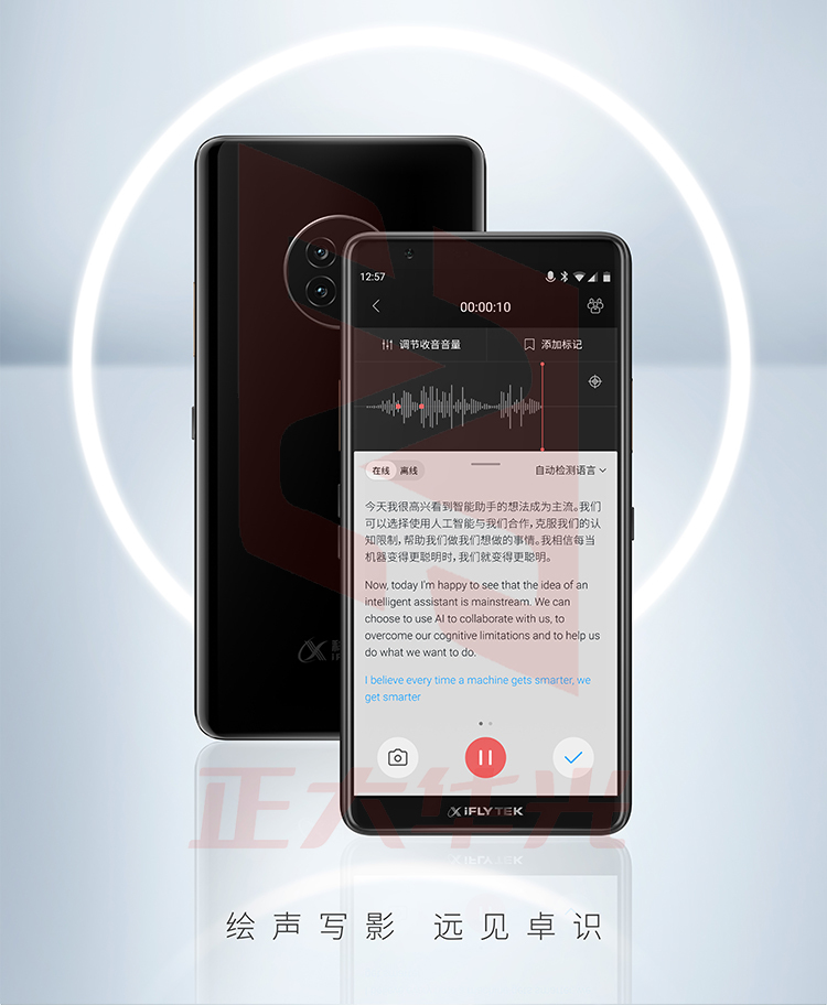 科大讯飞AI智能录音笔SR901终身免费转写 中英转译专业触屏2+10麦组合演讲会议录音器 64G+云储存 钢琴黑