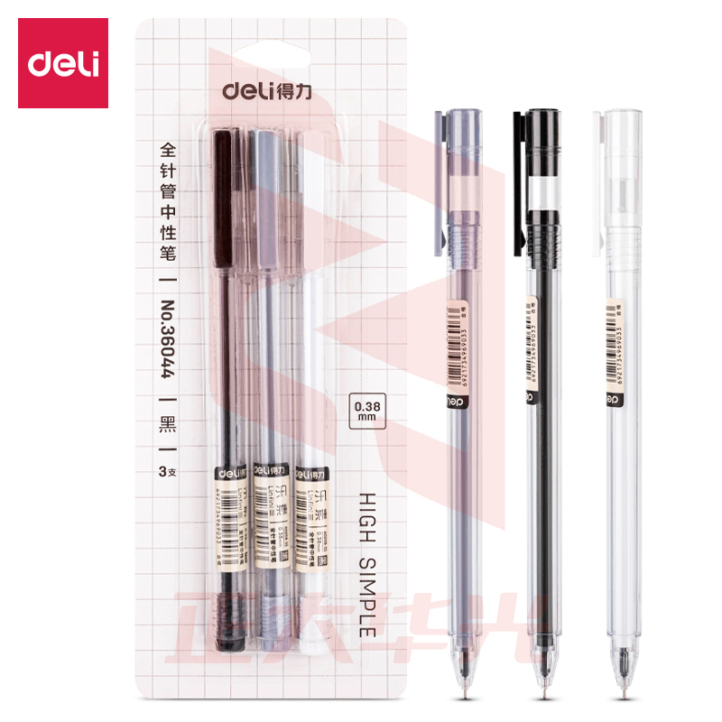 得力36044中性笔0.38mm全针管(黑)(3支/卡)XTGM04121531262888