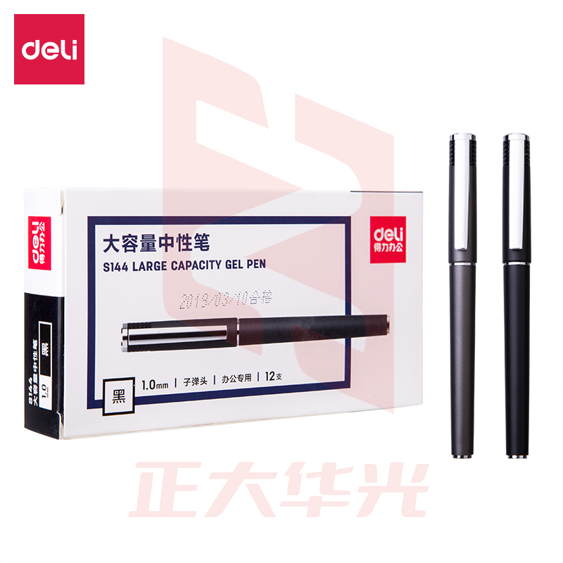 得力S144办公大容量中性笔1.0mm子弹头(黑)XTGM04120819101229