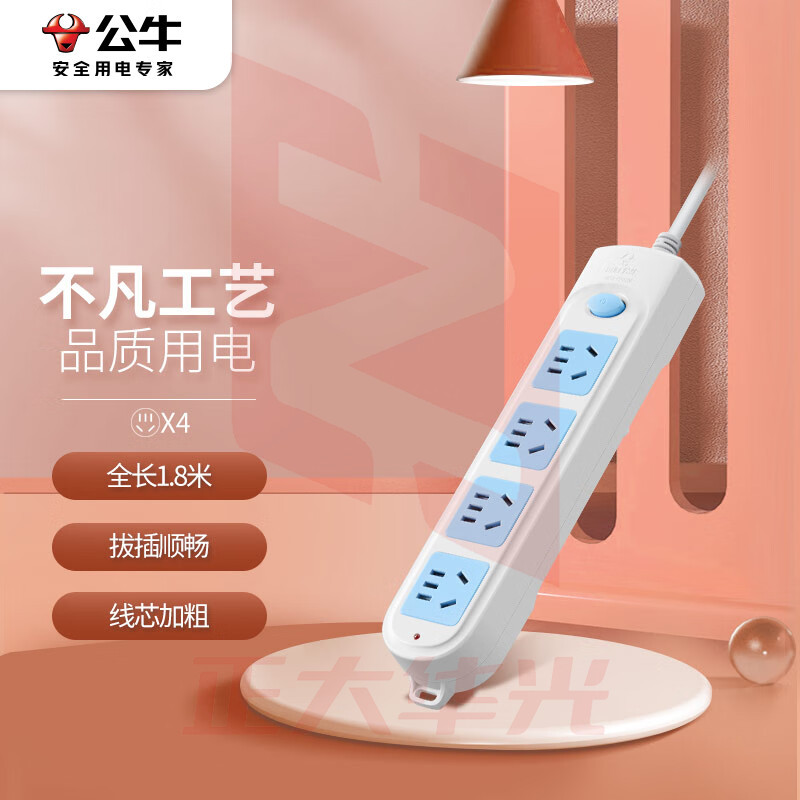 公牛(BULL) 新国标插座/插线板/插排/排插/接线板/拖线板 4位总控全长1.8米 GN-601 XTGM202307191353412