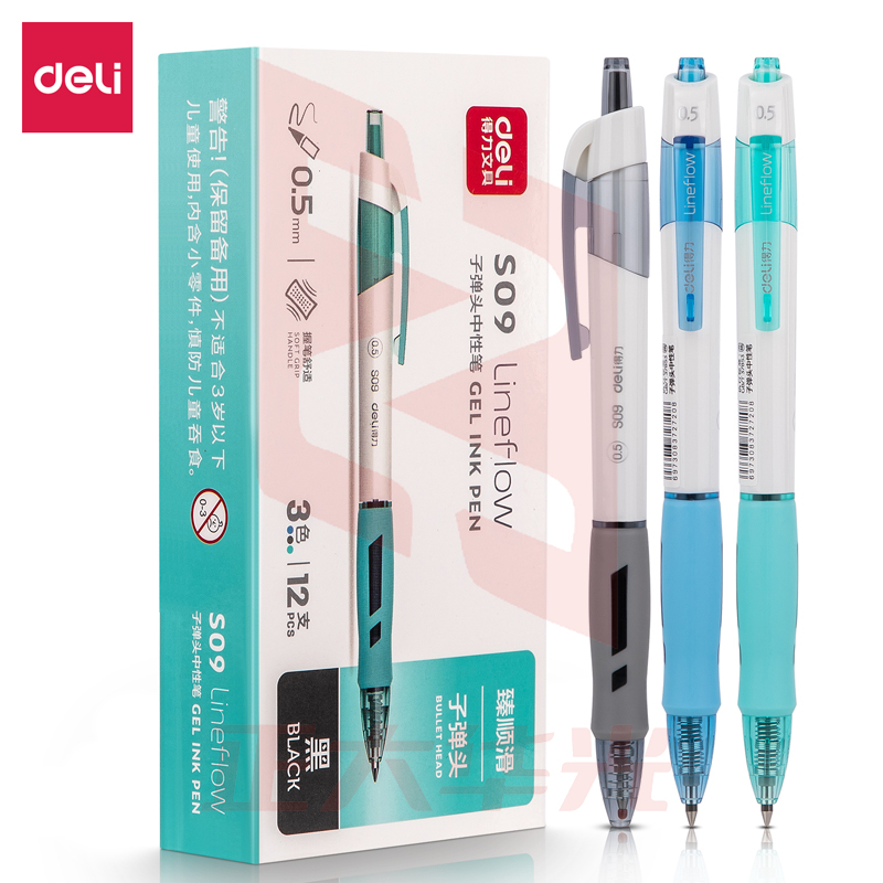 得力S09臻顺滑办公中性笔0.5mm弹簧头(黑色)(支)XTGM04111435448652