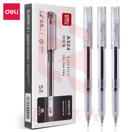 得力A524学生中性笔0.5mm加强型针管(黑)(12支/盒)XTGM04130750148241