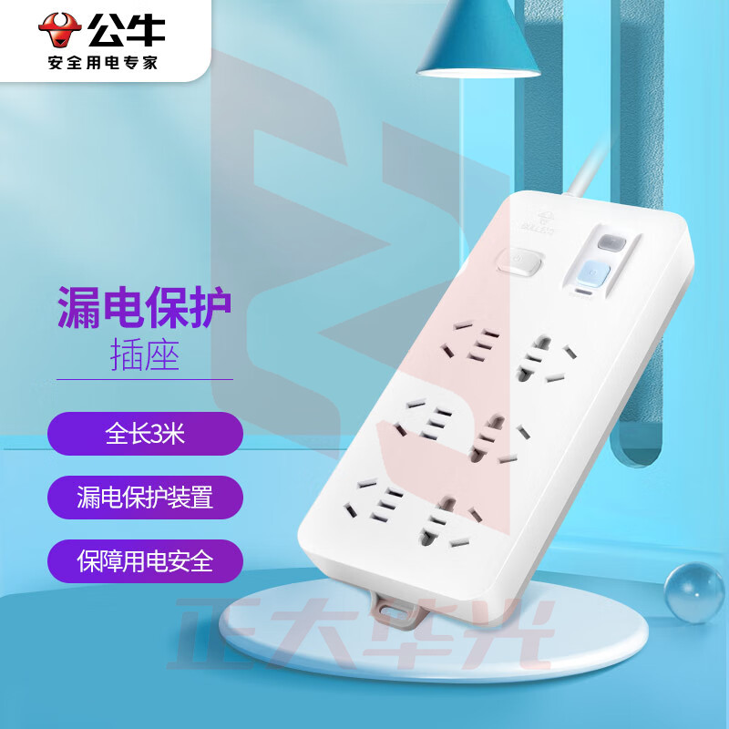 公牛(BULL)漏电保护插座/插线板/插排/排插/接线板/拖线板 6位总控全长3米 GN-705(XTGM202307191354044)