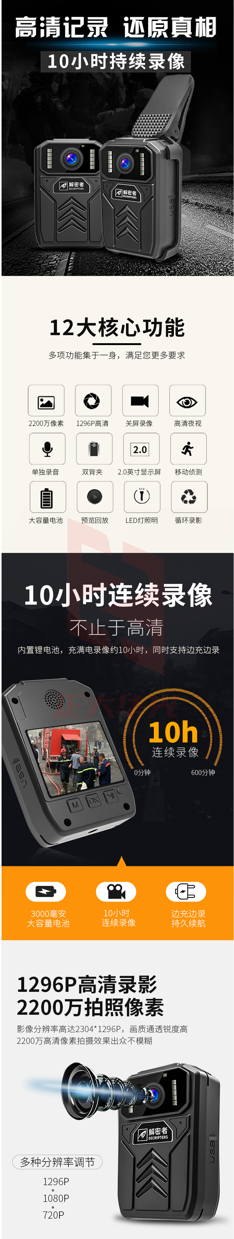 解密者(DECRYPTERS)DSJ-A5执法记录仪 执法仪 高清现场记录仪便携式视频音频记录仪专业摄像机 内置32G