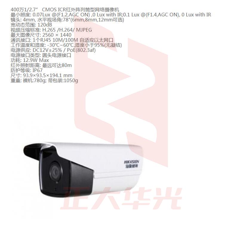 海康威视DS-2CD2T45-I8 400万1/3”CMOS ICR红外阵列筒型网络摄像机 IT.1277