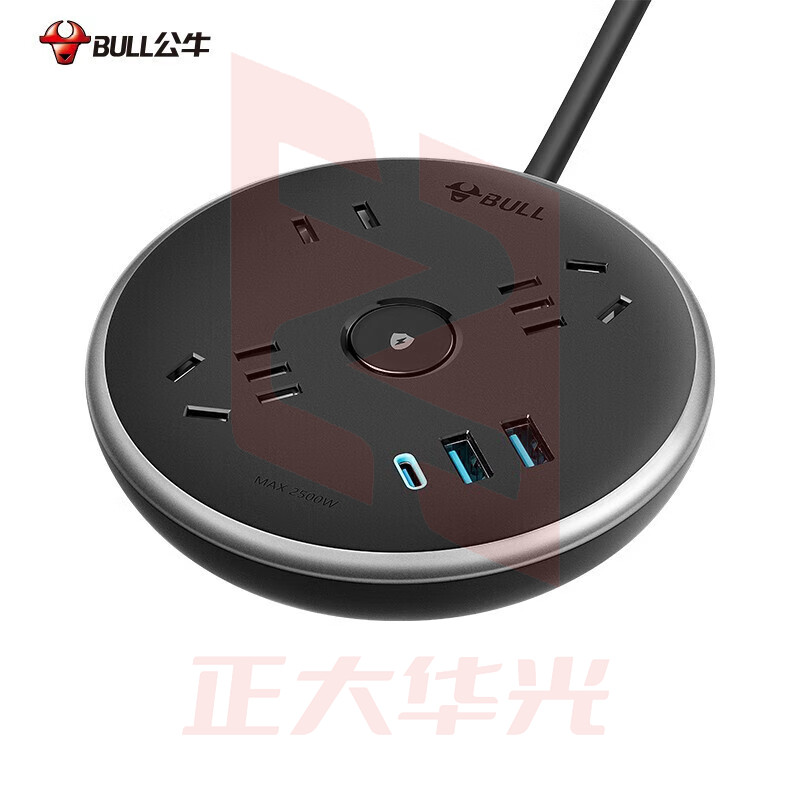 公牛(BULL) GN-R612U飞碟造型抗电涌防浪涌插座/插排/排插/接线板 3位总控 10A黑色 1.5米. XTGM202307191355084