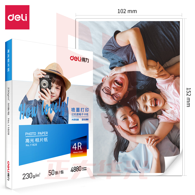 得力11828高光相片纸6寸-230g/m (白)(50张/包)XTGM0411125549284