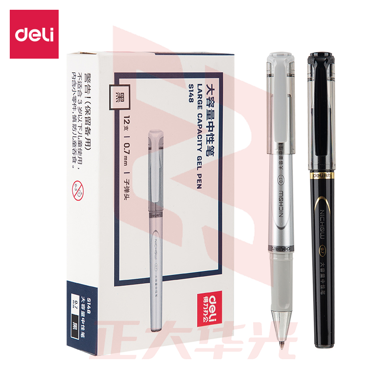 得力S148大容量中性笔0.7mm子弹头(黑)XTGM04121053335608