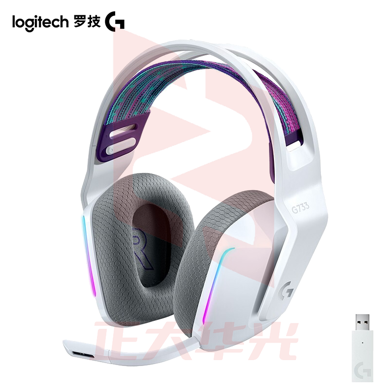 罗技(G) G733 RGB无线电竞游戏耳机麦克风 7.1环绕声 头戴式电脑耳机耳麦 FPS吃鸡 G733白色 (XTGM202307211317014)