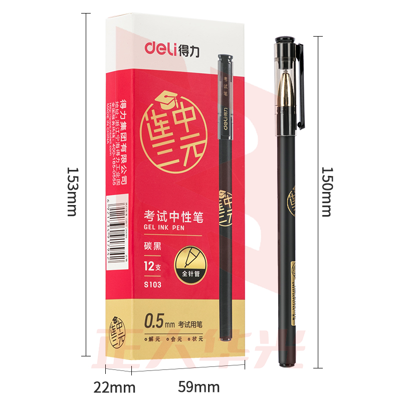 得力S103考试中性笔0.5mm全针管(黑)(12支/盒)XTGM04131054344928