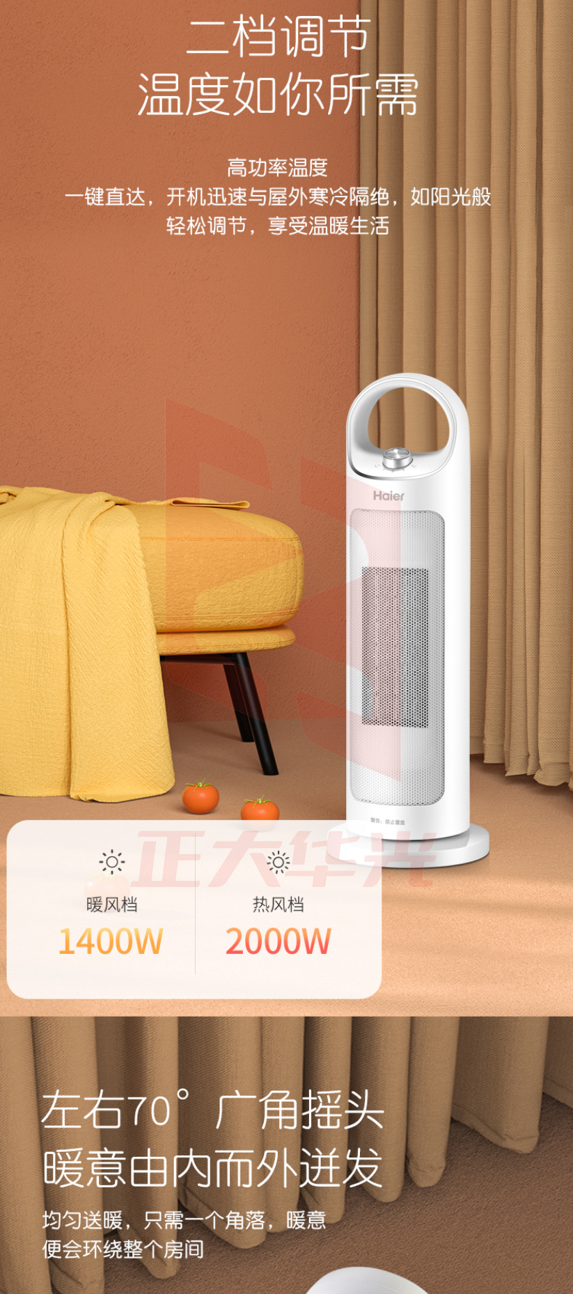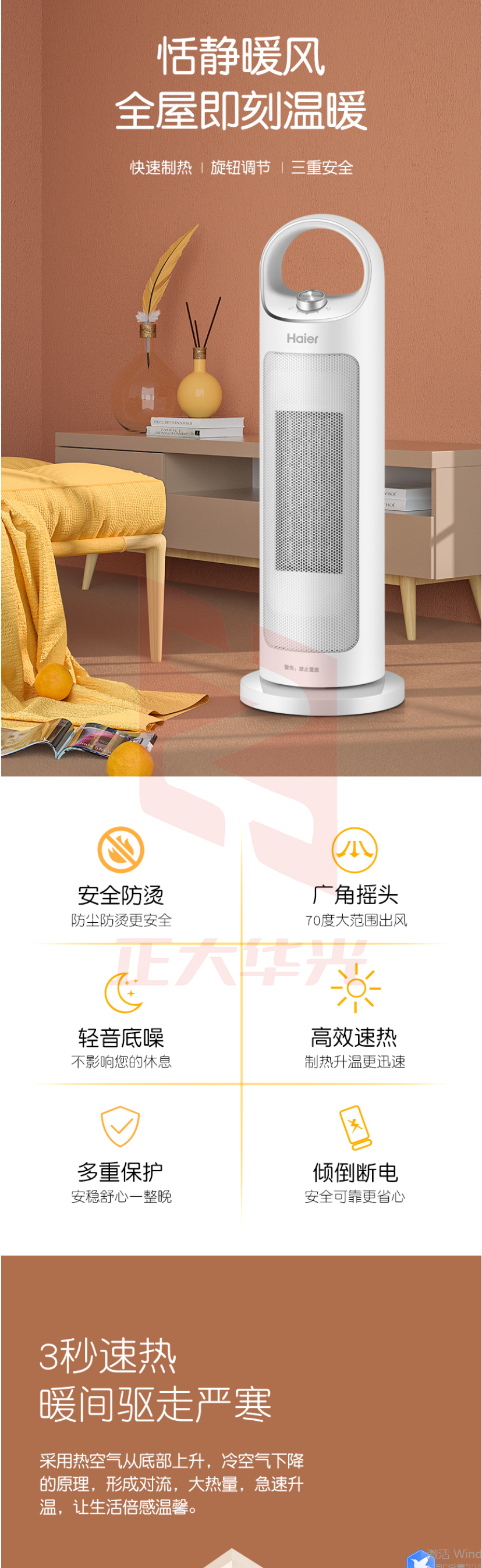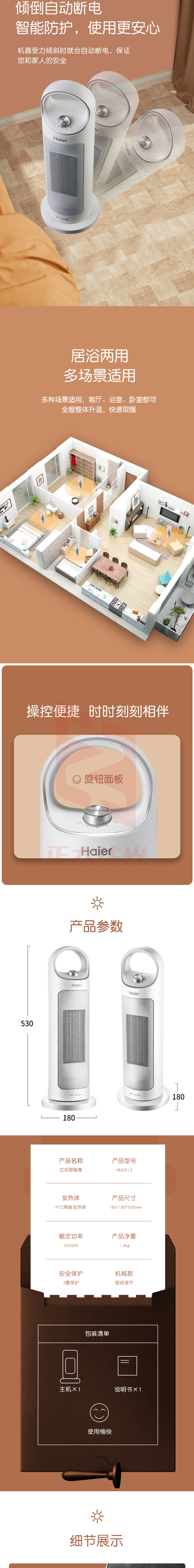 海尔 取暖器家用暖风机立式电暖风浴室电暖器节能省电速热电暖气小型烤火炉HN2012
