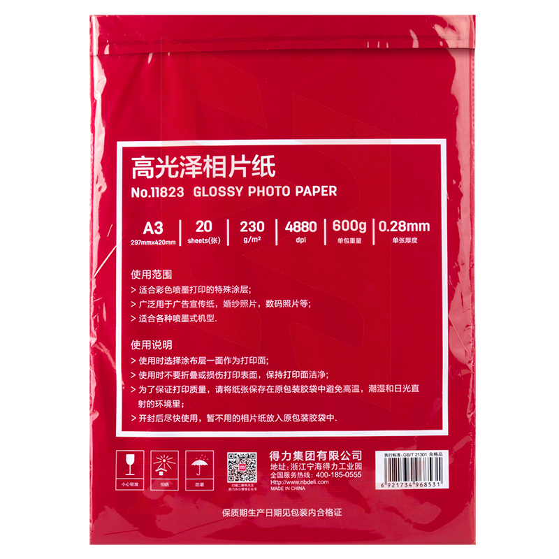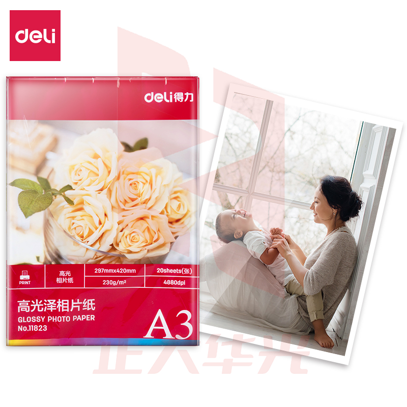 得力11823高光相片纸A3-230g/㎡(白)(20张/盒)XTGM0411124647134