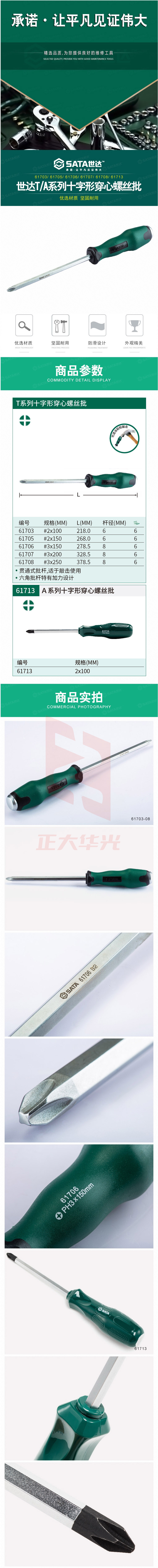 世达(SATA) 61705 T系列十字形穿心螺丝批#2x150MM