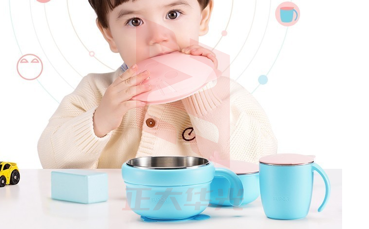 苏泊尔(SUPOR)婴儿注水保温碗 吸盘碗宝宝防摔碗316L不锈钢可拆卸辅食碗勺套装 五件套仙樱粉XTGM2023070213020711