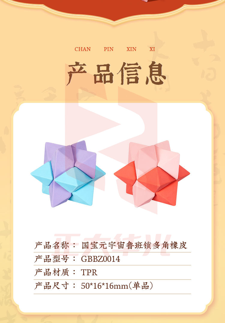 齐心 GBBZ0014 鲁班锁多角橡皮擦(国家宝藏)6个/套XTGM06141424334460