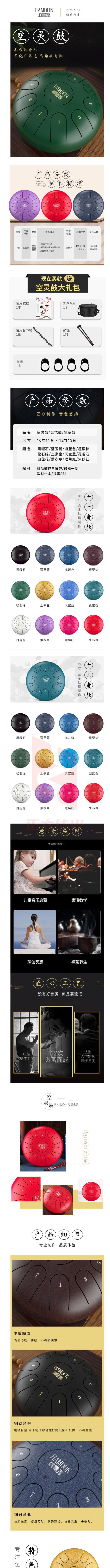 哈曼顿 HAMDUN 空灵鼓 12寸13音 蓝玉髓 钢舌鼓忘忧色空圆鼓手碟打击乐器 初学成人儿童通用 专业演奏级【需要其它颜色请咨询】