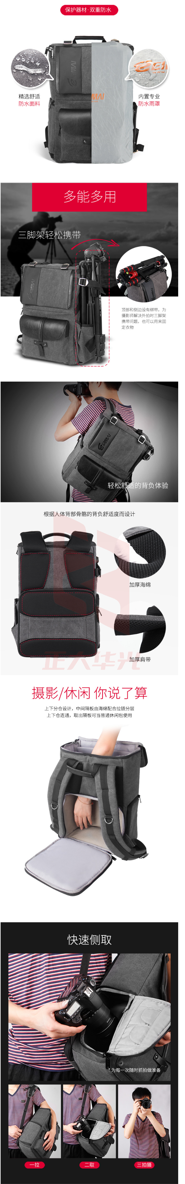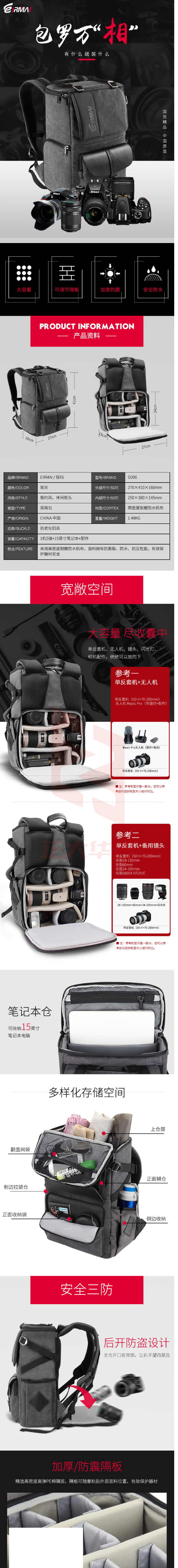 锐玛(EIRMAI)EMB-SD06 单反包相机包双肩摄影包数码帆布防水旅行背包 d90 3100d 炭灰色